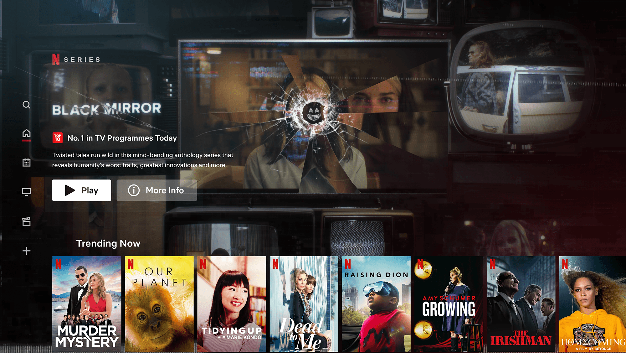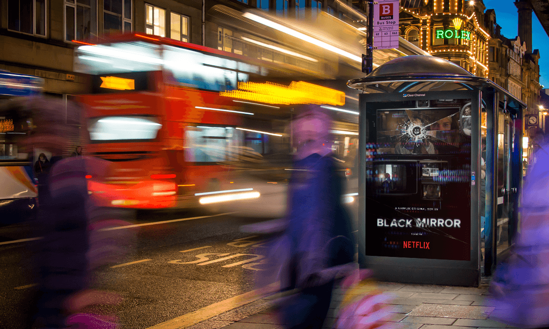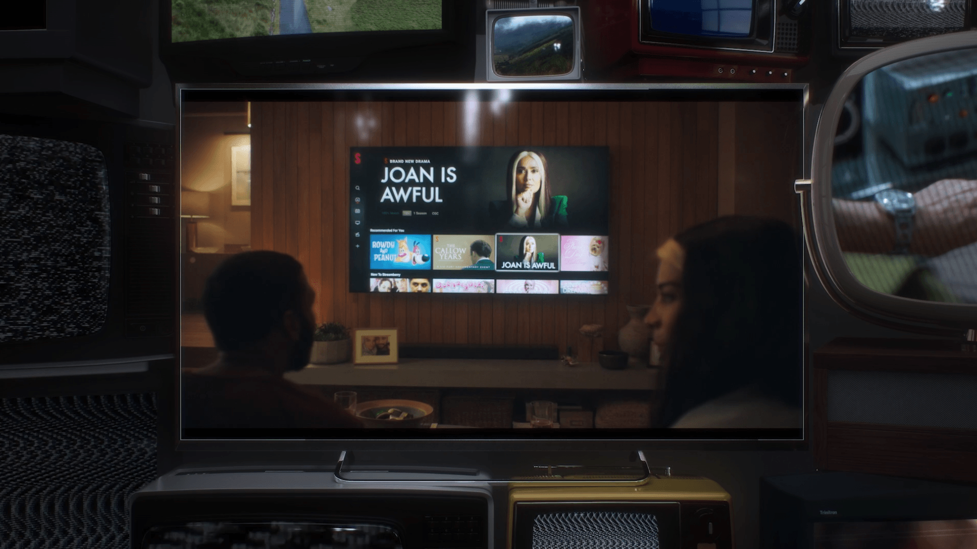 From demons and deepfakes, to replicants and animorphs, the Black Mirror collection transcends space, time, and reality in ways that feel like a far-out fever dream. Scenes from each episode play out across a dramatic mountain of retro televisions before aligning with close ups of the characters looking towards camera.