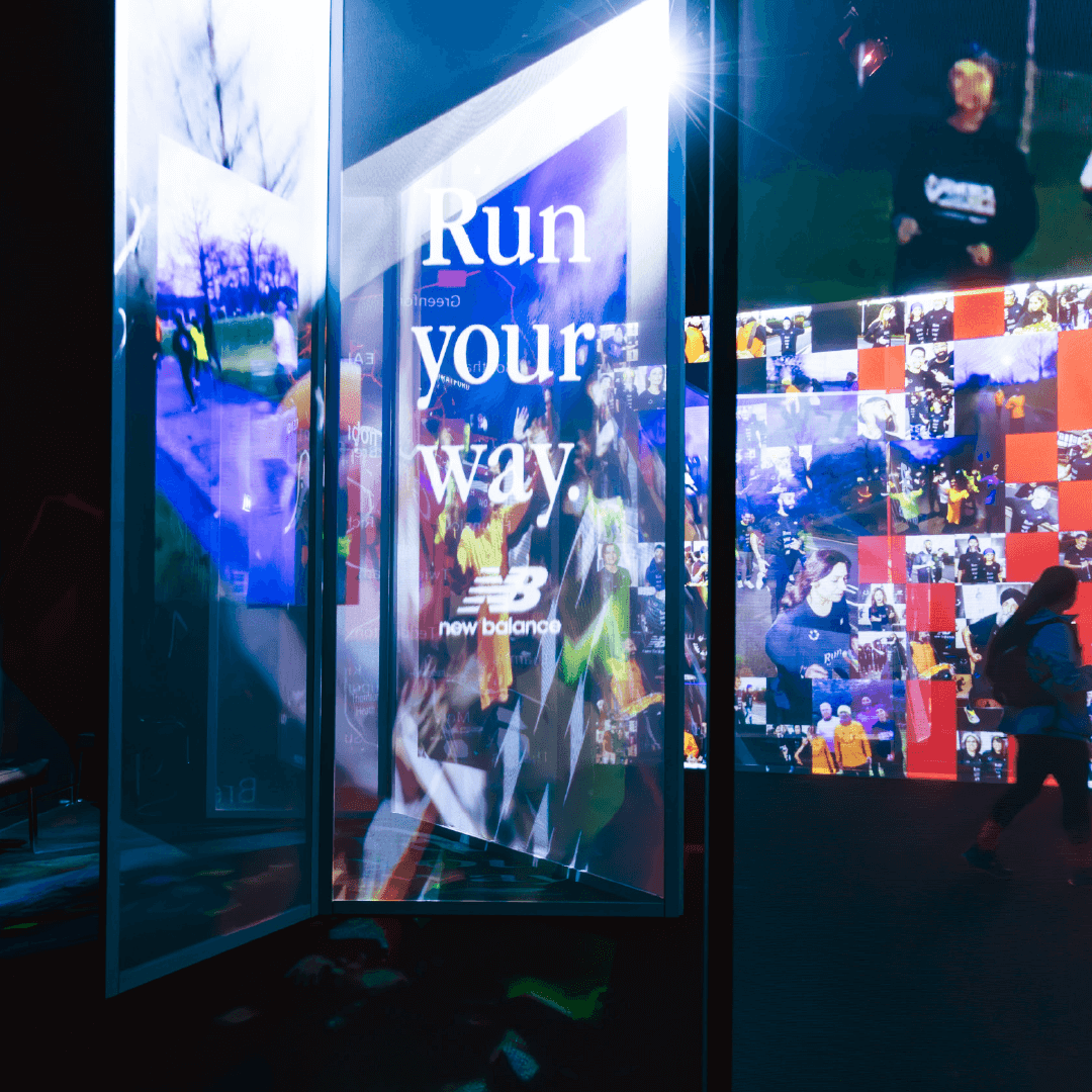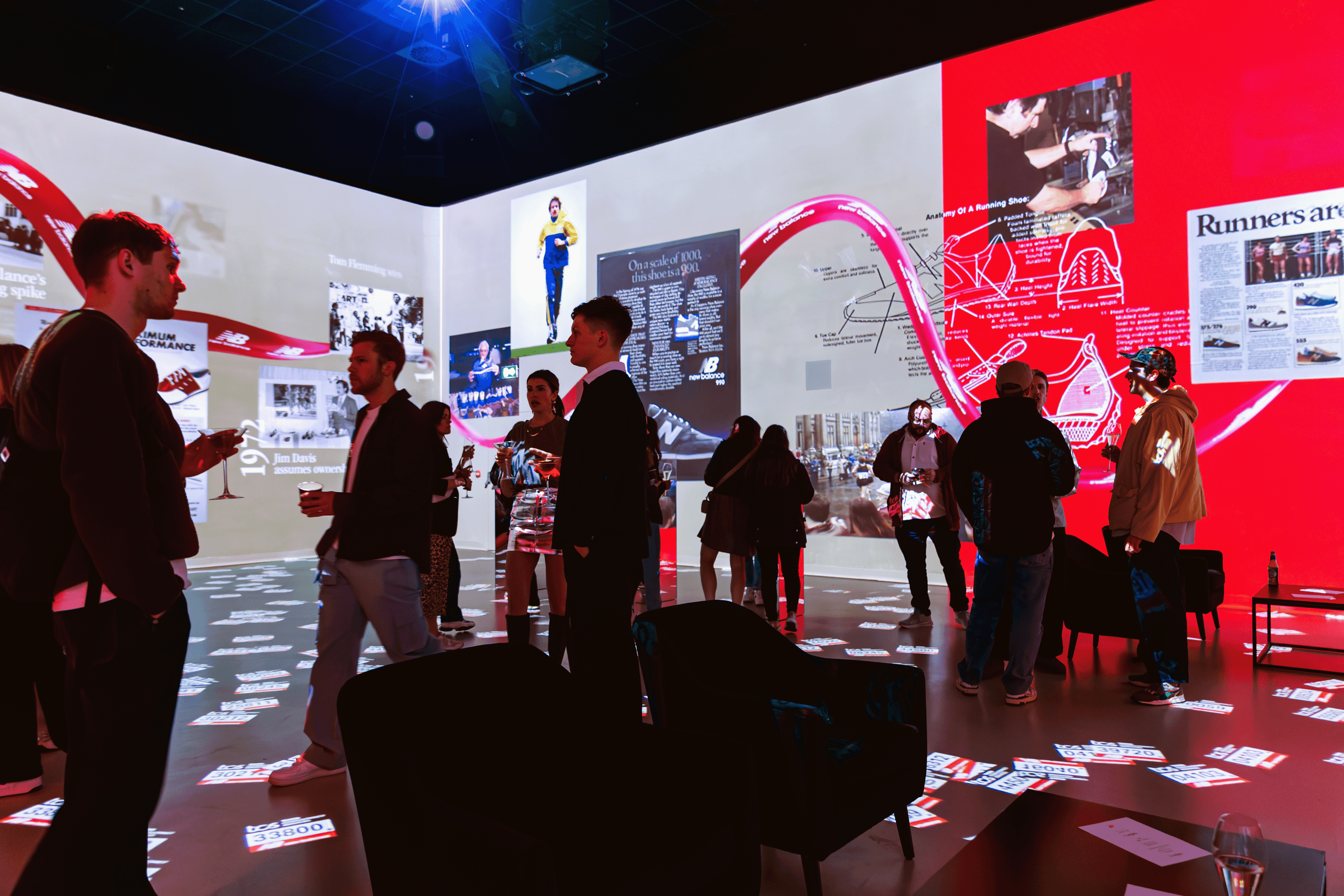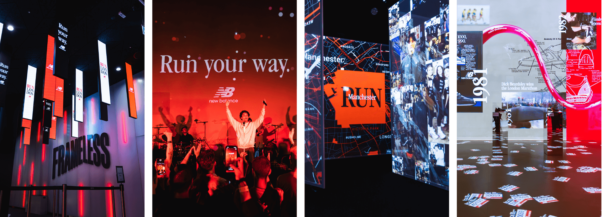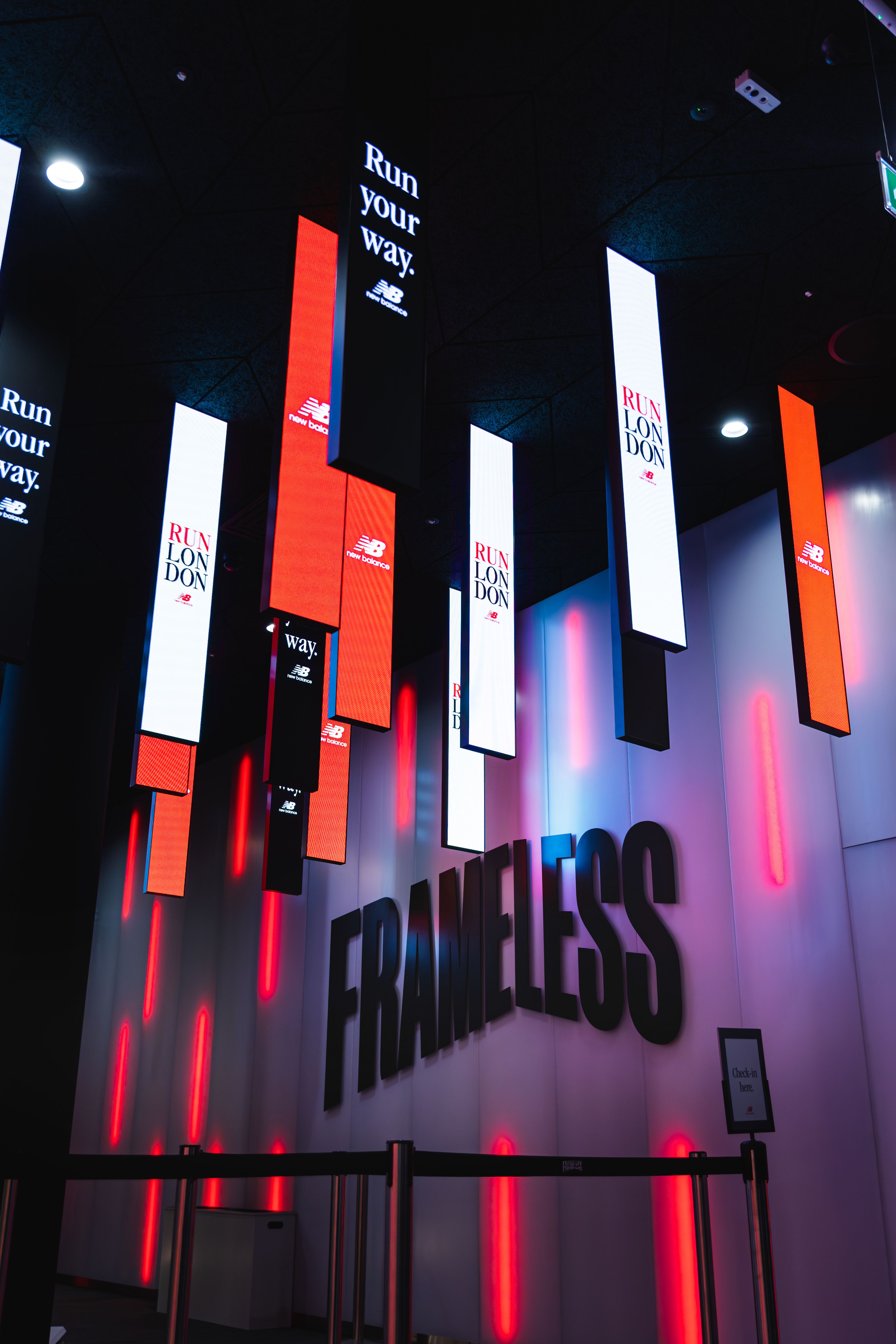 We helped New Balance and Gung Ho completely transform the Frameless immersive location ahead of the London Marathon. We got an early warm up in for the big event with a full brand takeover. Through a mix of LED and projected content, we created a 360° immersive experience with a live performance from Loyle Carner, DJs and product launches; a true celebration of the running community and New Balance’s heritage and future.