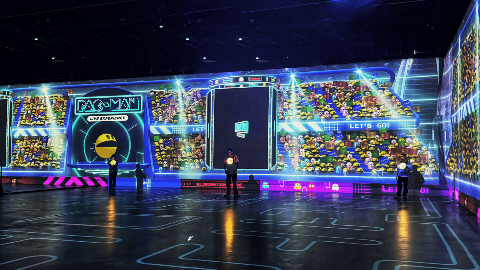 We teamed up with Little Lion Entertainment to bring to life their new live action immersive PacMan gaming experience in Manchester (and soon to be London and Dubai). We created a PacMan inspired world in CG, providing the backdrop to the game and playing out across the walls of the venue.